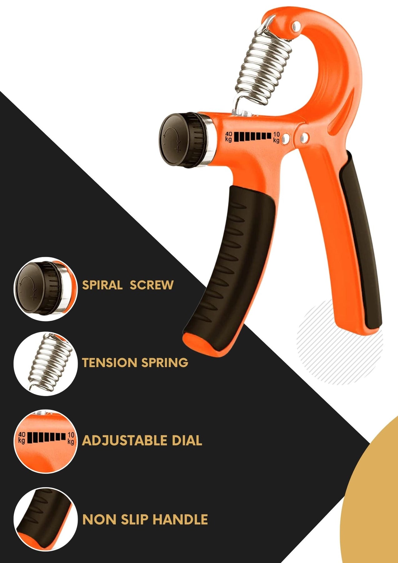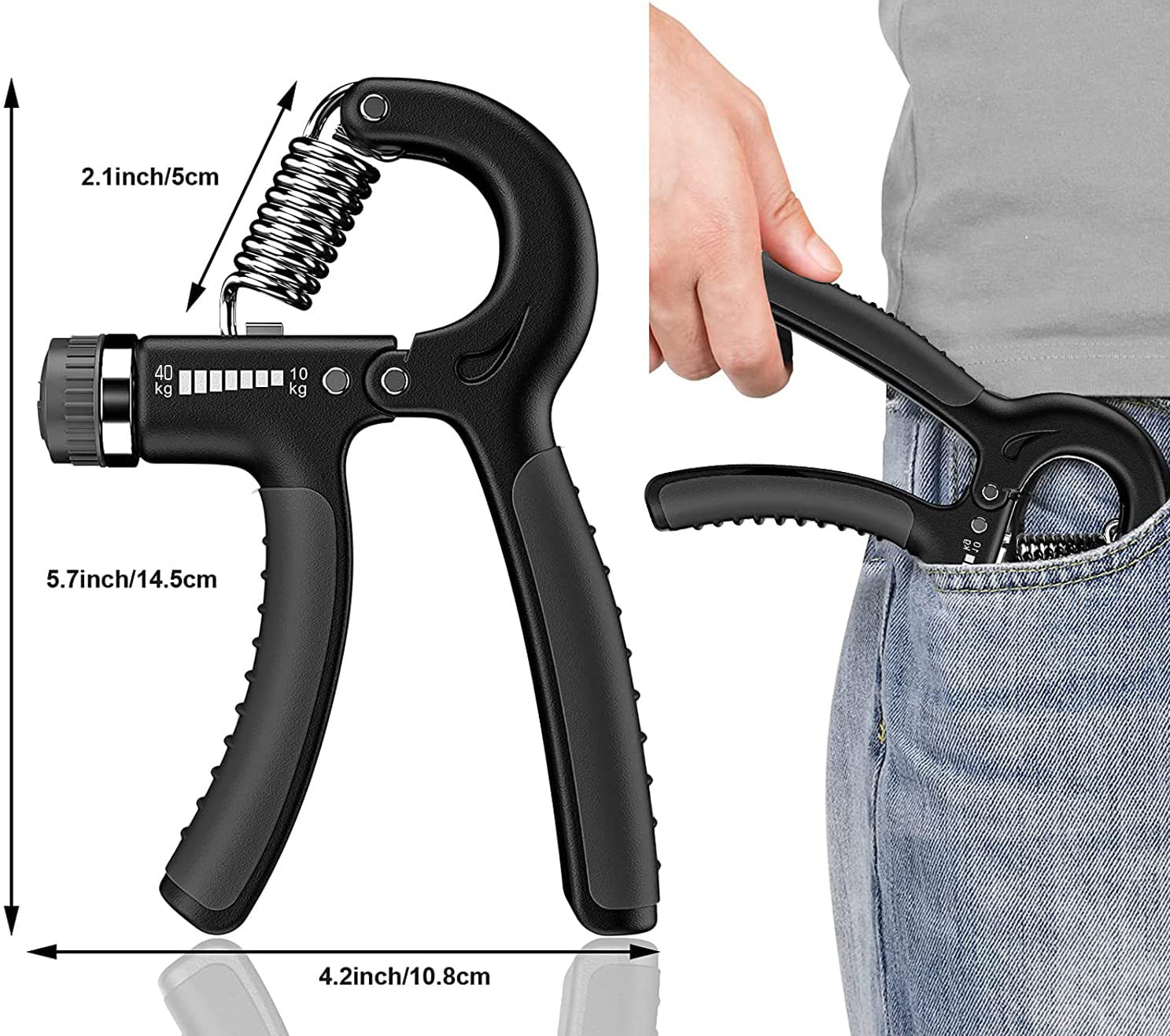 {ADJUSTABLE RESISTANCE}- Hand gripper 40 kg is easy to adjust the resistance from 10-40 kg as needed. The hand Gripper is suitable for everyone, like Athletes, sports, fitness coaches, fitness, musicians, and people who want to exercise their hands, wrists, and fingers. Also, it's easy and fast to do so. The resistance of hand grips for strength training is perfect for both men and women with different strengths as it can be adjusted easily.