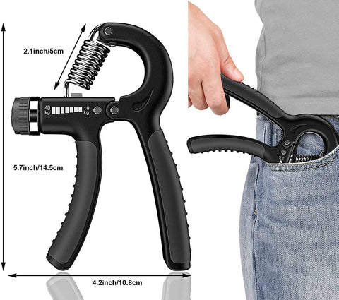Train your forearms, wrists, and fingers the right way with maximum comfort with the AJRO DEAL Handgrip. Ergonomically designed for the perfect fit any hand size ensures a stronger grip, engaging muscles that are harder to target. Take it everywhere and get stronger from the gym to the office. High-quality handle: The handle of the hand gripper is comfortable and durable, using TPR high-quality materials. Added anti-slip function to prevent the AJRO DEAL gripper from suddenly detaching from your hand during the exercise. High-strength spring: The use of high-strength springs to make your grip strengthened and durable, the spring and grip articulation are reinforced to prevent the spring from falling off the spring fly. Enhance the user experience. Rotational Resistance Adjustment: You can choose the appropriate resistance according to your specific needs and goals, just rotate here and follow the "+" and "-" directions to strengthen or reduce the resistance, so as to effectively enhance the strength of your hands and fingers. Improve finger pressing force: Whether you are an athlete, musician, or ordinary person, you can enhance finger strength and finger flexibility through finger grip training.