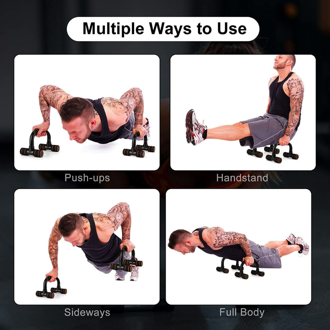 All-in-One Fitness Kit – Includes Push-Up Bars, Abs Roller, Tummy Trimmer & Resistance Tube for full-body workouts.