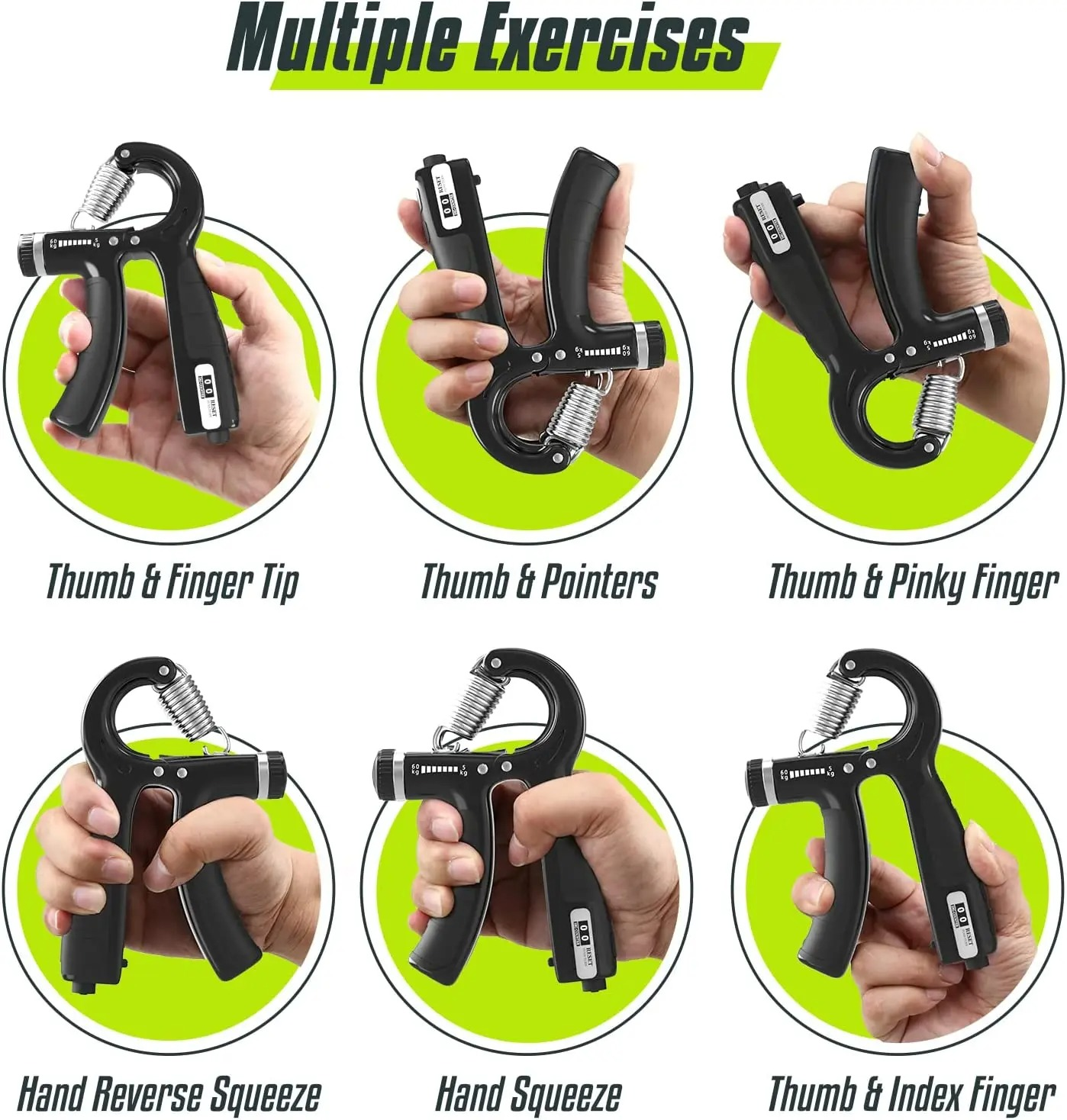 ✅ 2-in-1 Training Kit – Hand Power Gripper + Finger Resistance Band for complete hand workout.