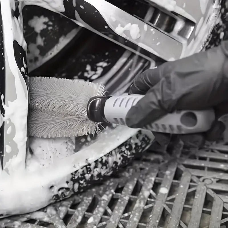 This tire rim hub cleaning brush is designed to make cleaning your wheels and tires effortless. Featuring plastic-coated wire bristles, the brush provides a gentle yet effective cleaning solution, preventing scratches or damage to your rims while removing dirt, brake dust, and grime. The ergonomic handle ensures a comfortable grip, allowing for easy maneuverability around tight spots and hard-to-reach areas. Perfect for regular maintenance, this brush is ideal for cars, motorcycles, and bicycles, helping keep your wheels sparkling clean and looking brand new.