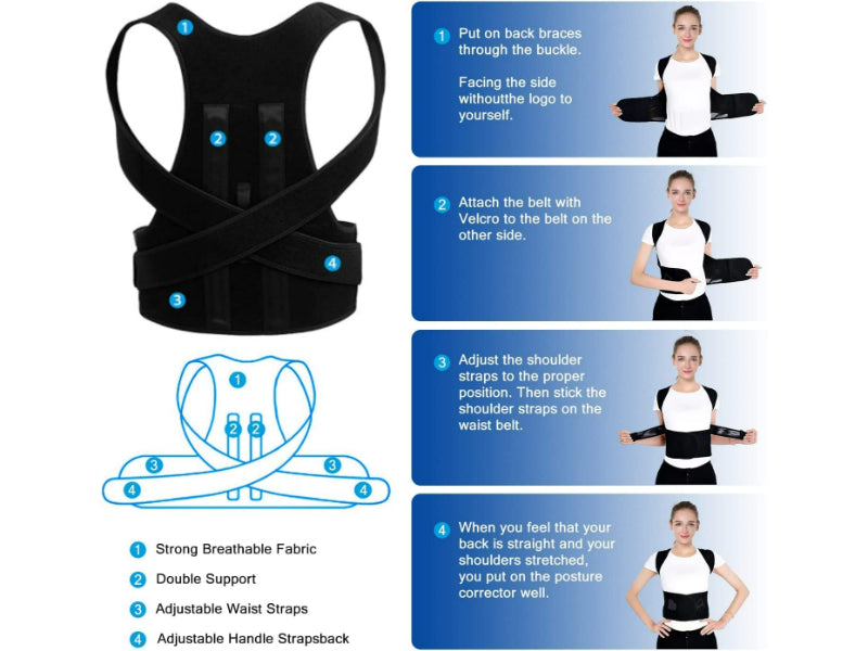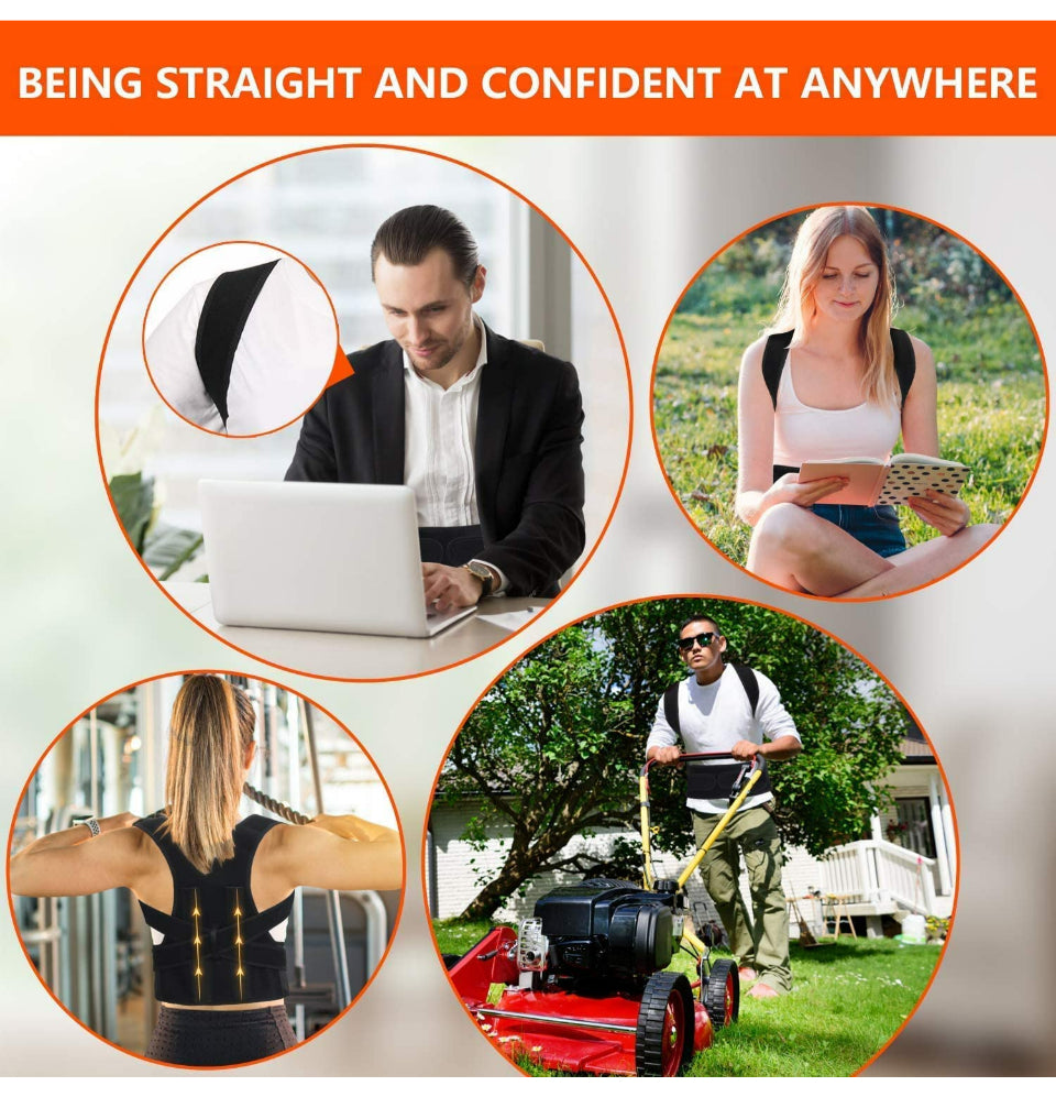 Effective: This Posture Corrector is scientifically designed For bad posture helps you undo years of slouching and rounding your upper back, and retrains your natural posture with minimum restriction of movement. Super comfy padding and lightweight design make it easy to wear at home, work, in the car, at the gym... wherever you want! Retrains your posture - naturally Thick straps are super-padded for comfortable all-day wear - no chafing, rubbing or pinching Easy to use - slips on and off like a backpack Heavy-duty stitching won't rip or tear under tension Fits discreetly under work uniforms, scrubs, latex, lead & BPA free. Posture Corrector is Effective, Breathable and Comfortable Posture Corrector with Upper Back Support for men, women, adults & kids alleviate all types of back pains and offer shoulder support and improves bad body posture. Aside from better posture, it enhances breathing, body alignment and gets rid of back, shoulder, neck and upper back pain.Wearing it is so effortless you won't even know it's there, as long as you use a correct posture, helping you stop from slouching or hunching while working.