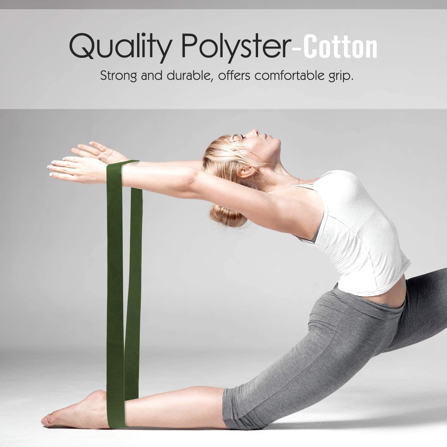 The first most common use - is just to increase your flexibility. For example, if you currently can't touch your finger to your toes, use our anti-skid yoga strap to bridge the gap. Then over time, you can "walk" your hands closer to your feet until the point you can touch them completely without even using the strap.