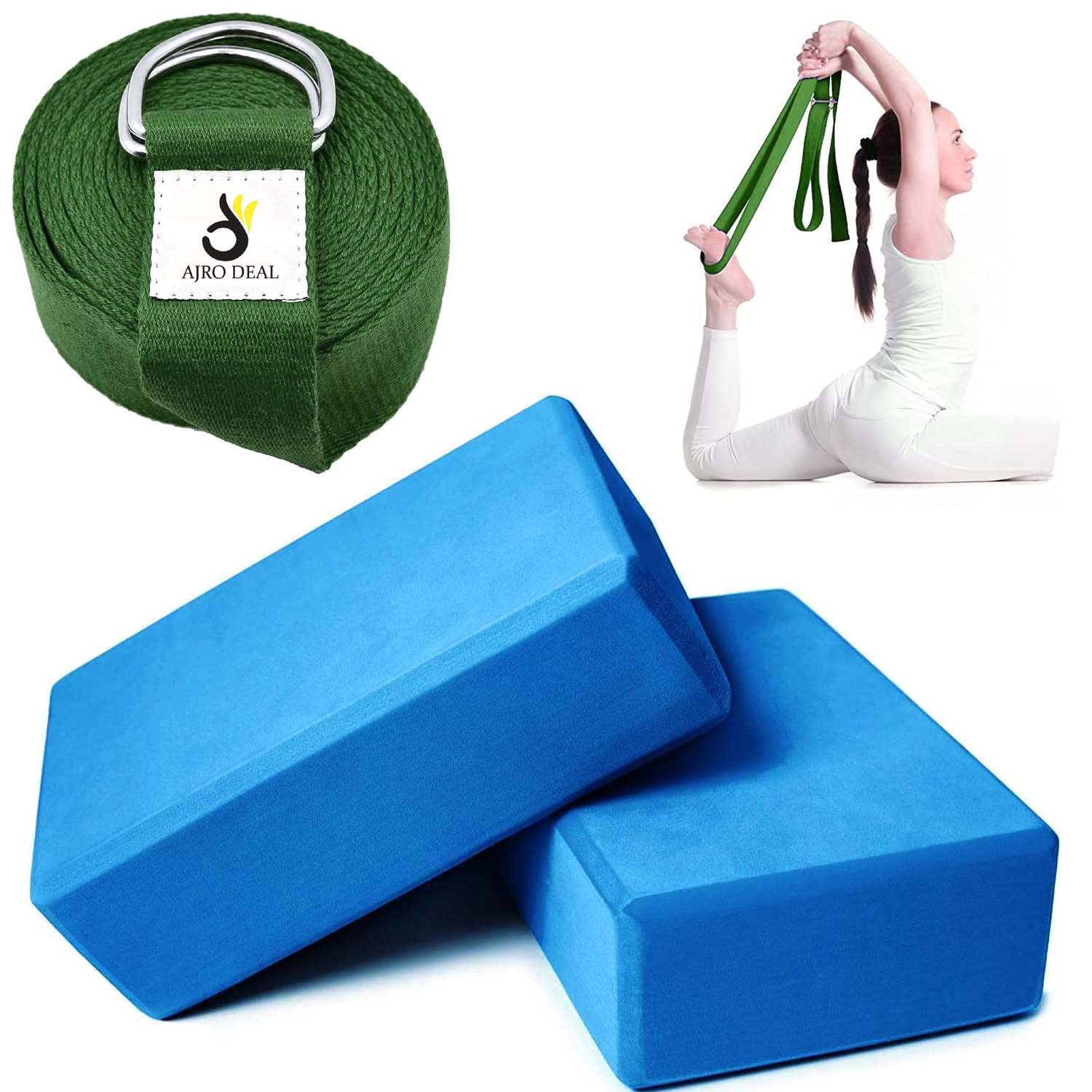High Density EVA Foam Yoga Block for Improve Strength| Flexibility| Yoga Brick & Yoga Strap with Extra Safe Adjustable D-Ring Buckle for Back Support Bend, Yoga Session for Men & Women's