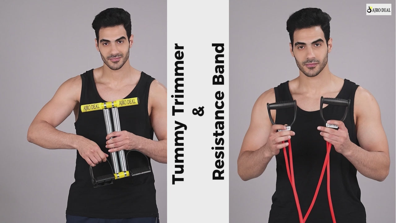✅ 3-in-1 Fitness Tool – Tummy Trimmer + Heavy Resistance Band + Toning Tube.